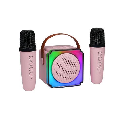 - Dětský karaoke set P8 růžový: 2x bezdrátový mikrofon, Bluetooth, LED