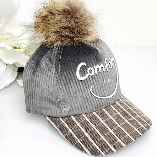 Dětská kšiltovka do chladného počasí - béžová s bambulí