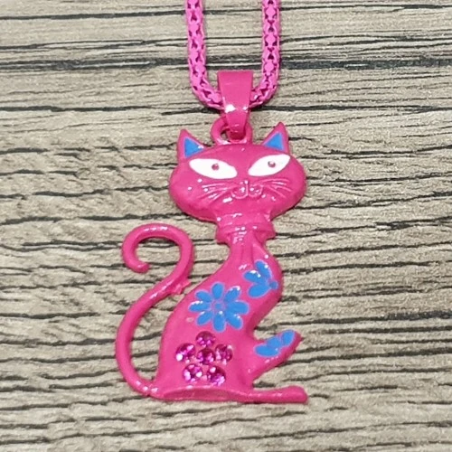 Hledáte něco speciálního pro malou slečnu, která má ráda zvířátka? Tento růžový řetízek s originálním přívěskem ve tvaru kočky je trefou do černého. Kočička je zdobená modrými květinovými motivy a zářivými růžovými kamínky, které šperku dodávají ten správný šmrnc a eleganci.