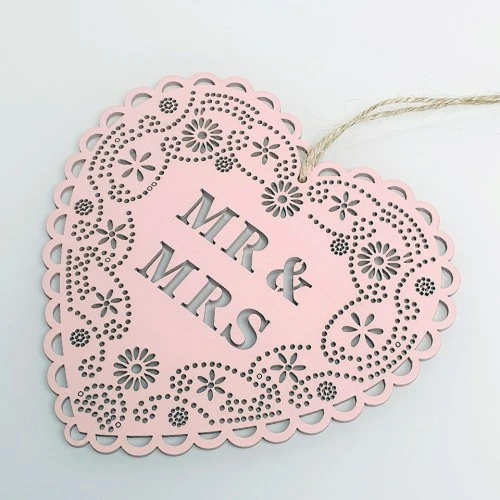 - Dřevěná dekorace na svatbu – srdce růžová, romantický svatební doplněk