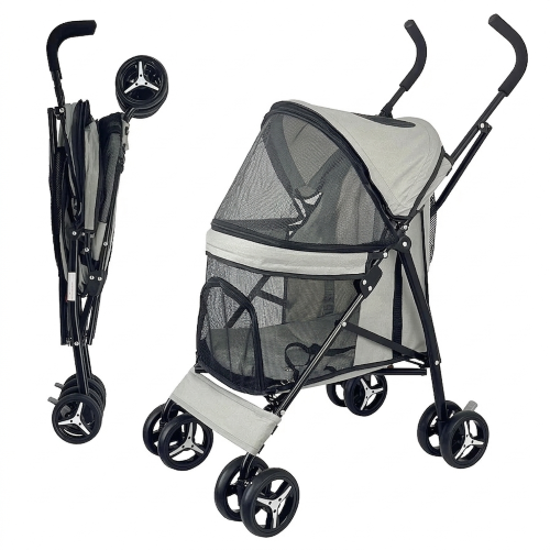 Kočárek pro psy a kočky do 8kg - golfový, skládací - šedý