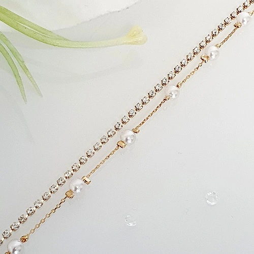 Náramek na nohu dvojitý zlatý - perličkySkladem 17 ks49 Kč/ ks40 Kč bez DPH