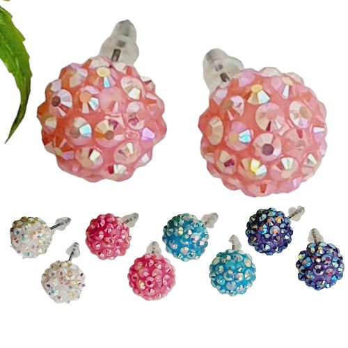 Náušnice kuličky vykládané jemnými plastovými kamínky.