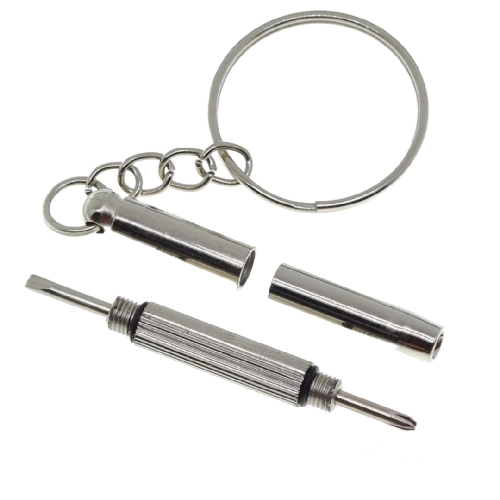Šroubováček je určen pro povolování nebo utahování šroubků na brýlích. Po odšroubování horní nebo dolní části budete mít k dispozici buď křížový nebo plochý typ šroubováčku. Spodní nástavec slouží jako úchytka šestihranných matiček nebo hlaviček šroubků.
