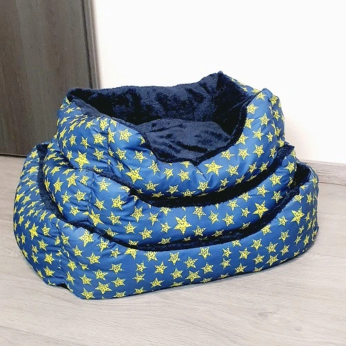 Pelíšek pro psy a kočky – modrý s motivem hvězd, velikost S, M, L
